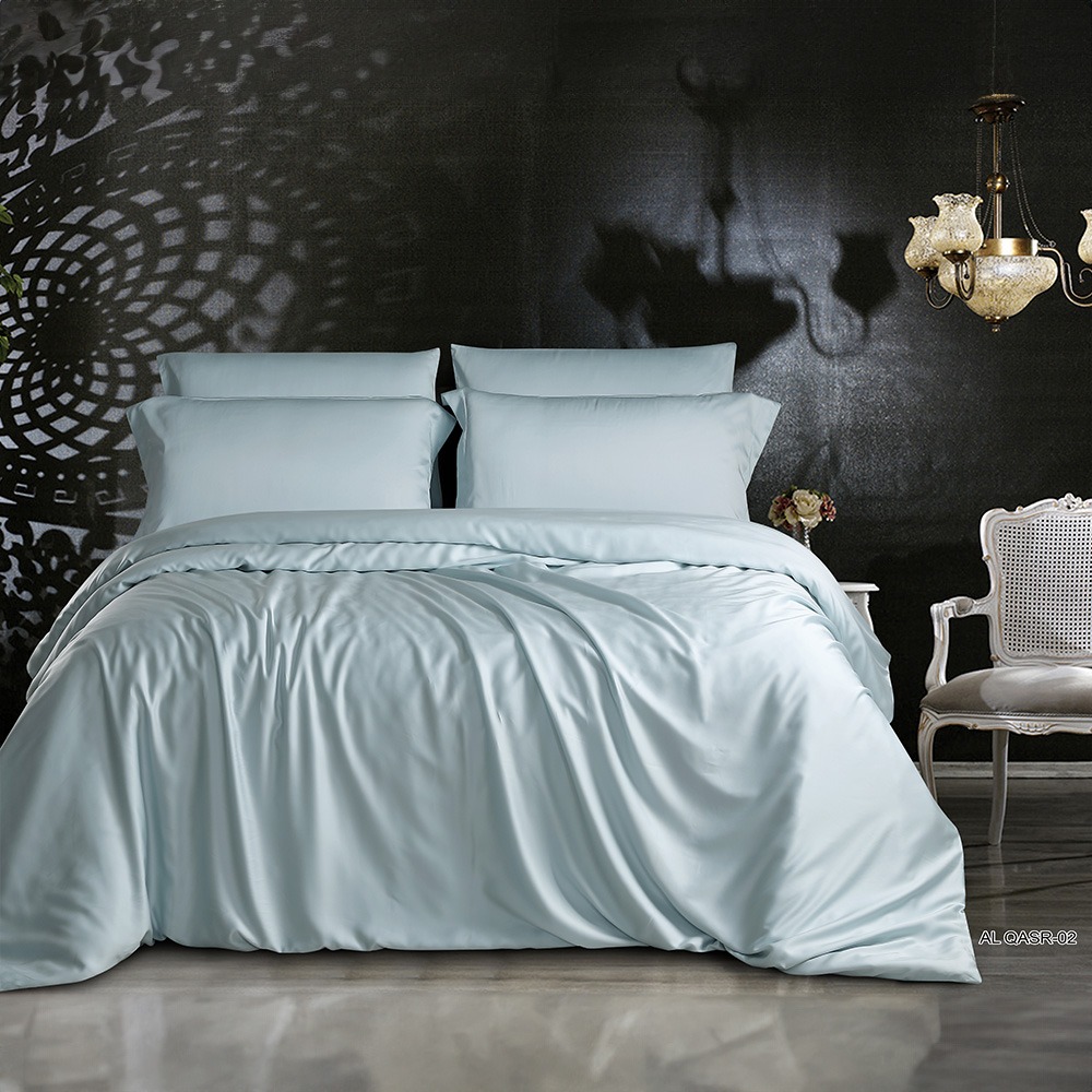نقدم طقم غطاء لحاف القصر الحريري لعشاق الفخامة و المظهر الراقي، مصنوع من الحرير ليمنحك نوماً مريحاً و نعومة فائقة، كما يمنح سريرك مظهراً راقياً و أنيقاً.