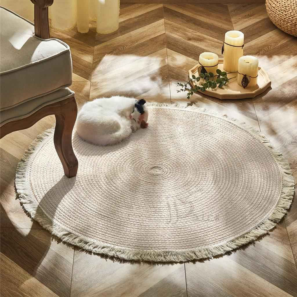 اعكسي تفرد اختياراتك في تفاصيل منزلك بالحصول على هذه السجادة العصرية، بتصميمها المُستدير وطرازها البوهيمي، مصنوعة يدويًا من الجوت الطبيعي بإتقان تام، مقاومة للرطوبة ومناسبة لتوضع في أحد أروقة منزلك المميز لتضفي لمسات من السحر الريفي لمنزلك، يمكن تنظيفها بالمكنسة الكهربائية بانتظام للصيانة، متينة وتستحق الاقتناء.