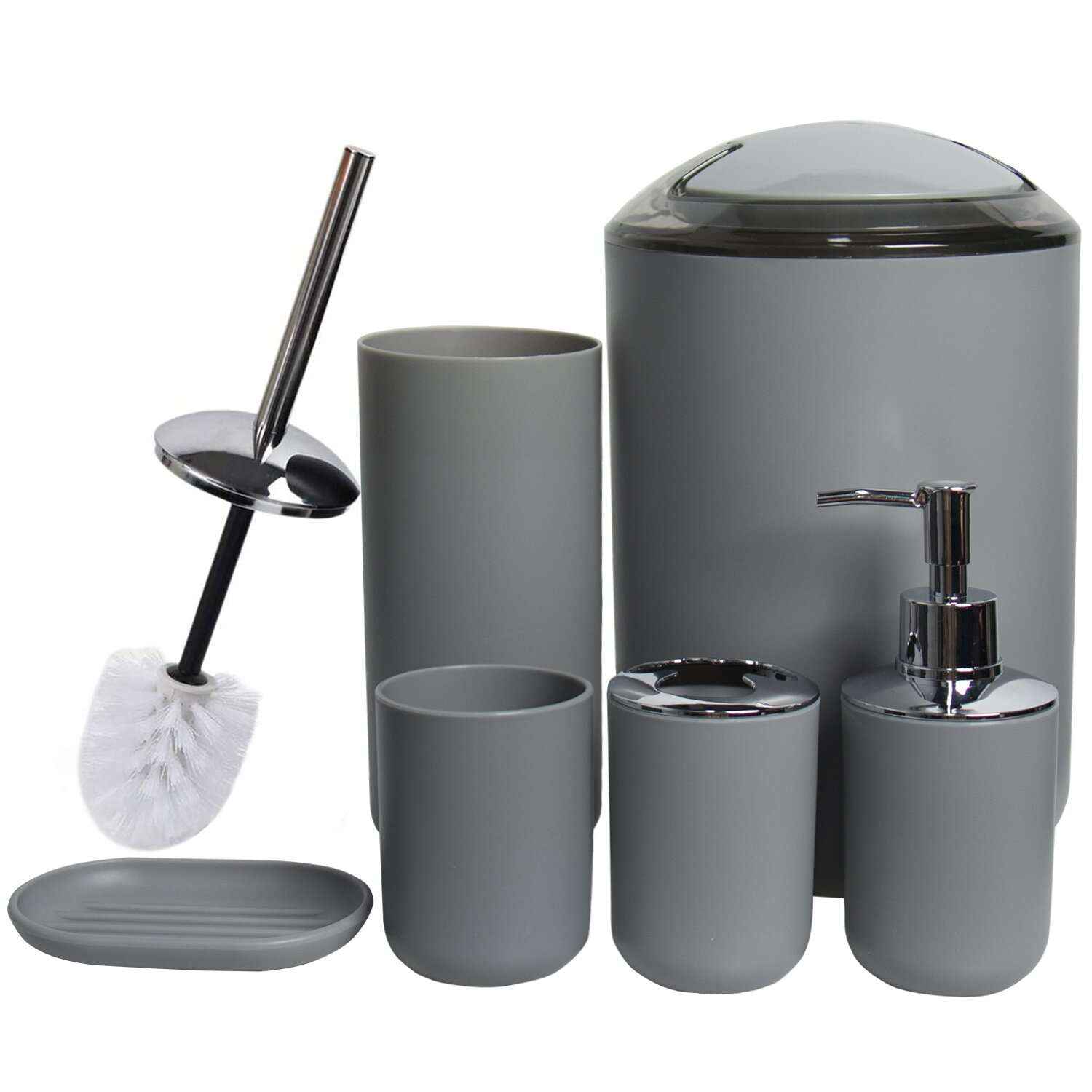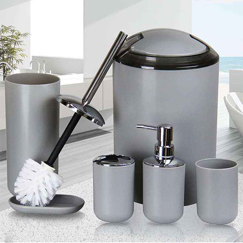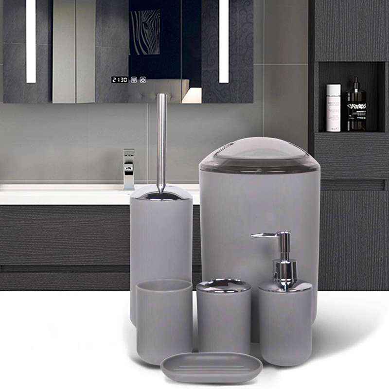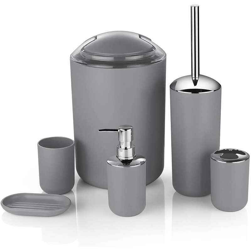 طقم إكسسوارات حمام بلاستيك مكون من 6 قطع