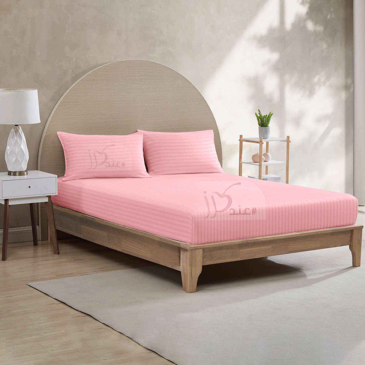 طقم شرشف سرير مطاط مخطط, زهري