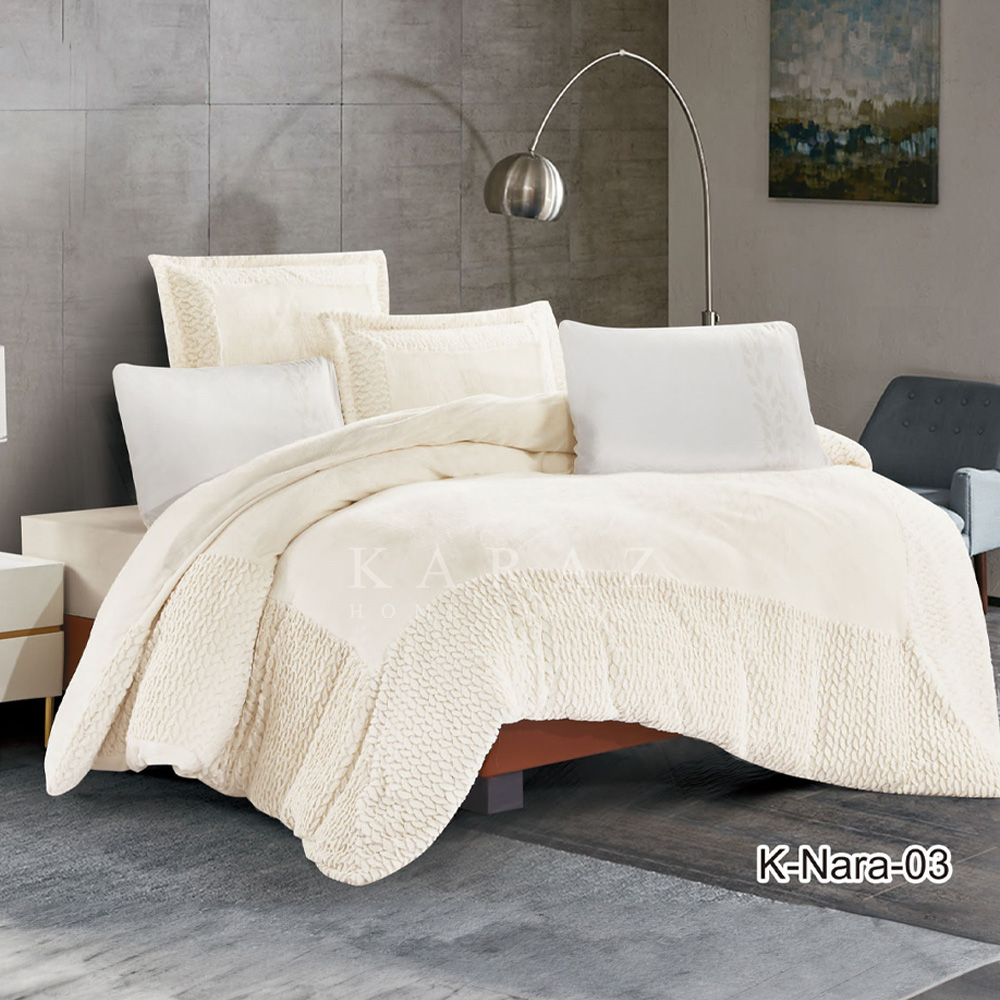أضيفي الدفء والراحة إلى غرفة نومكِ باقتناء طقم اللحاف الرائع هذا، مُصمم بطابع عصري فَاخر مصنوع من المخمل المحفّر، ومصنوع من خامات الفرو الصناعي شبيه الطبيعي فائق النّعومة وعالي الجودة، ويتّسم بالفَخامة والراحة ودفىء لامثيل له لتنعم بنوم هادئ.  بالإضافة للنّعومة والمَتانة لضمان الراحة والاستدامة.