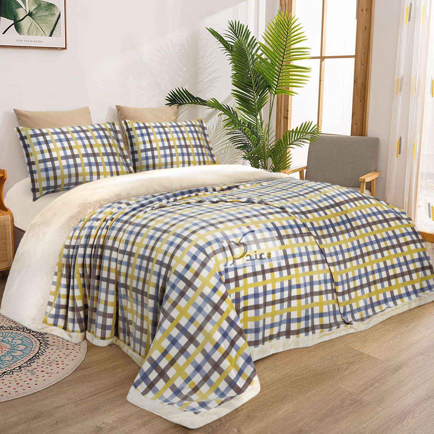 طقم لحاف شتوي كروهات وجه مخمل مع وجه فرو سادة مفرد/مفرد ونص ( 3 قطع )