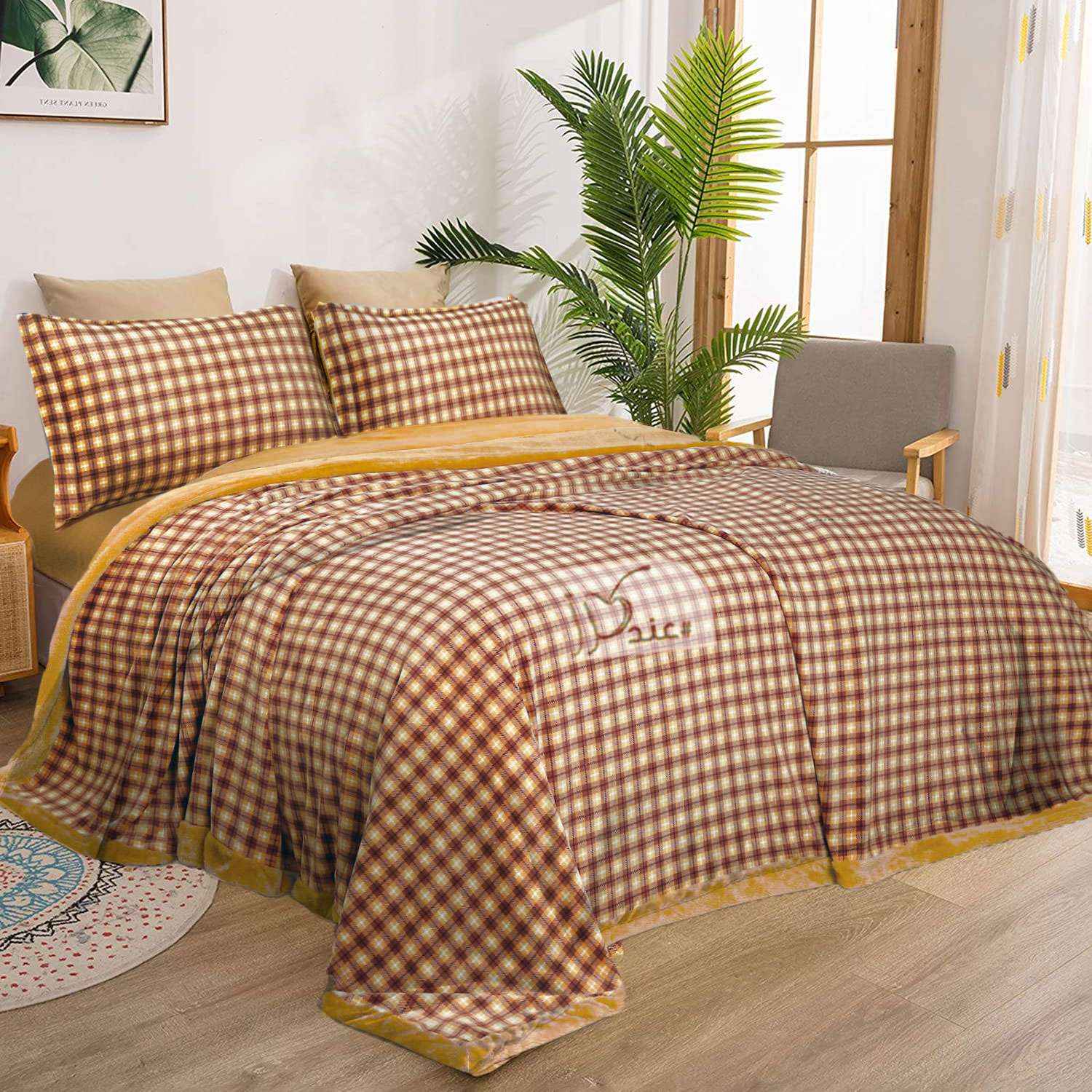طقم لحاف شتوي كروهات وجه مخمل مع وجه فرو سادة مفرد/مفرد ونص ( 3 قطع )