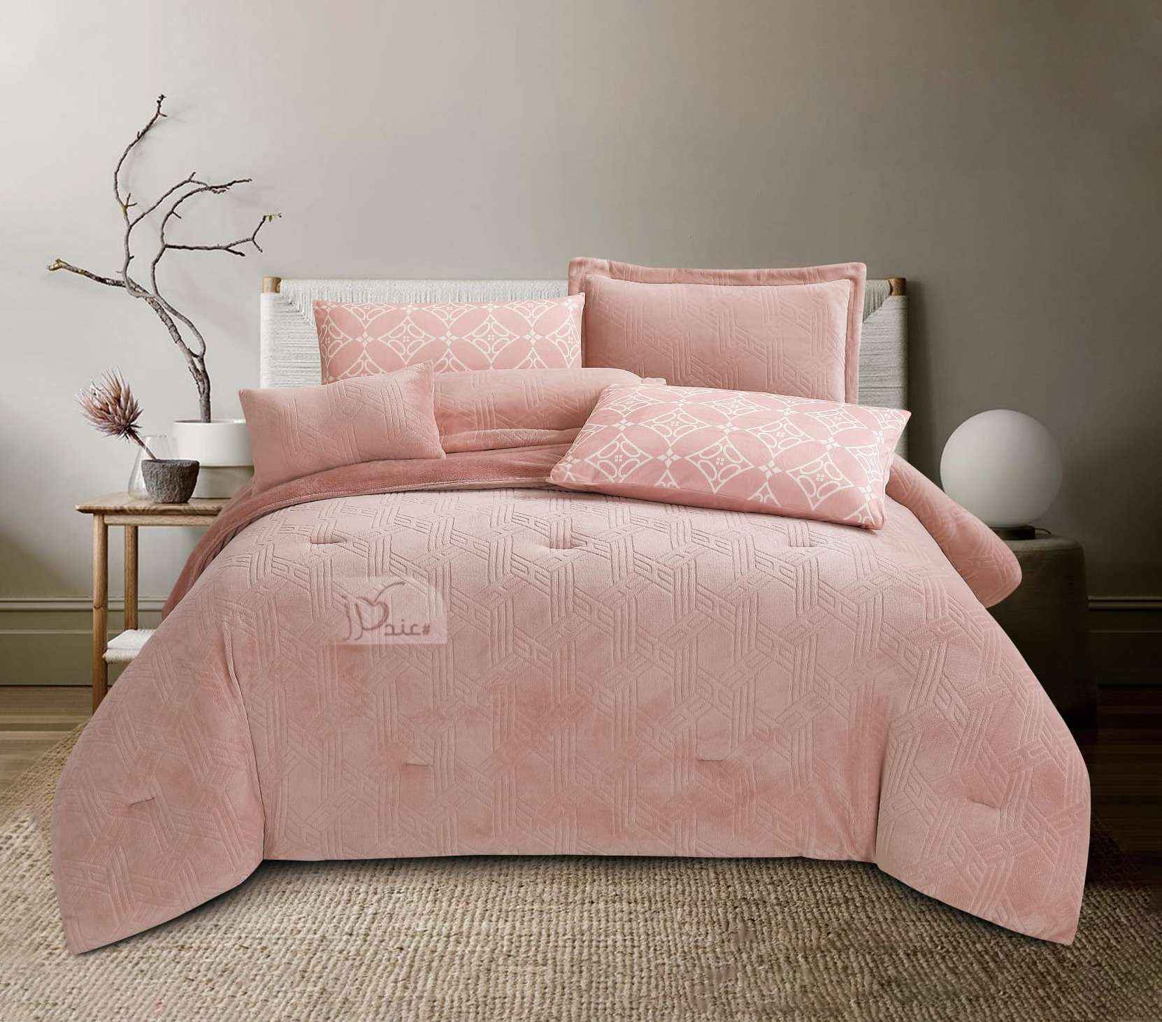طقم لحاف شتوي مخمل وفرو مفرد/ مفـرد ونص 4قطع، وردي