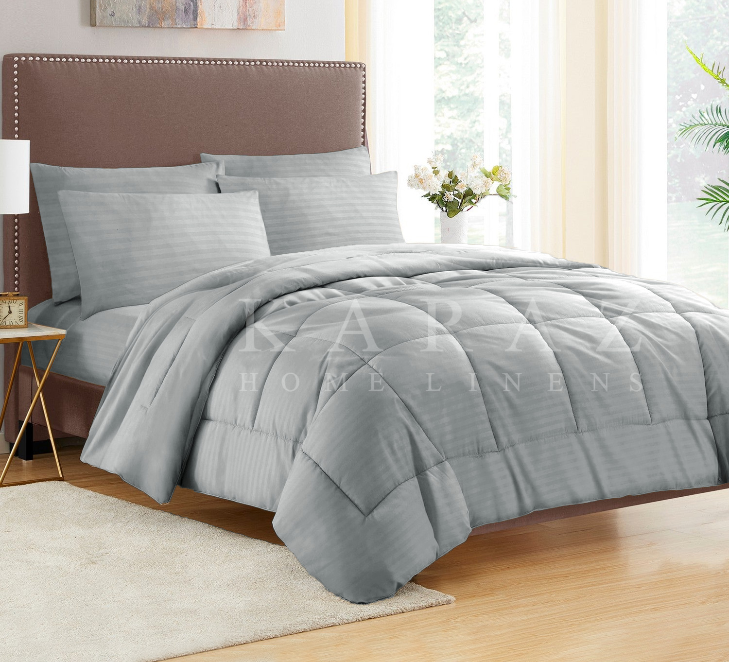 طقم لحاف فندقي مقلم، مفرد/ مفرد ونص 3قطع