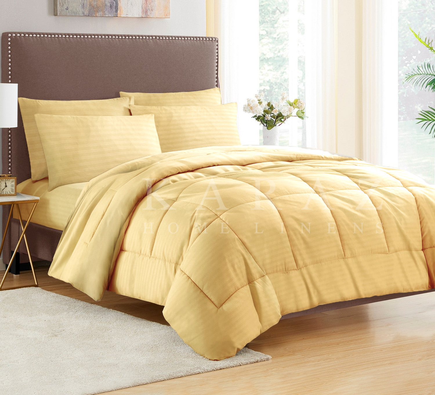 أضف مظهراً بلمسة الفنادق بالحصول على طقم اللحاف المخطط الرائع هذا من كرز، بتصميم عصري وجميل ليضفي على غرفتك لمسة من الإبداع، ويمنحك الراحة في كل ليلة، مصنوع بأحدث التقنيات من خامات المايكروفايبرعالية الجودة بالمَلمس القُـطني فائق النّعـومة مريح للغاية، يمكنك أيضا تنظيفها في غسالة الملابس عند الحاجة.