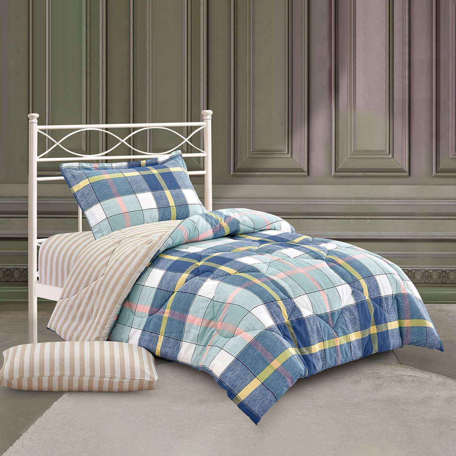 طقم لحاف قطن بوجهين مفرد/ مفرد ونص مكون من 4 قطـع ( Twin Size )