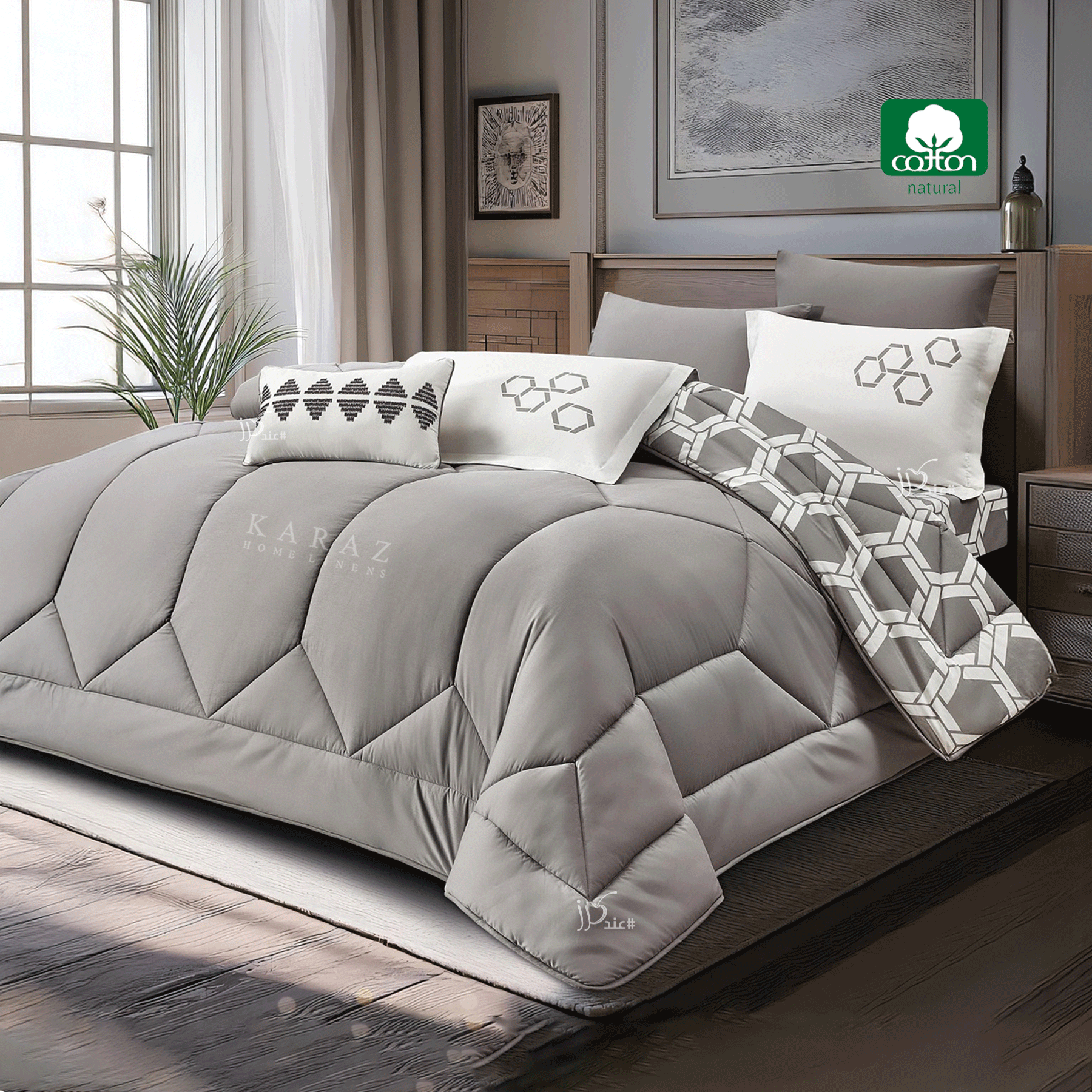طقم لحاف قطن 100% كينج دبل فيس – 7 قطع – رمادي