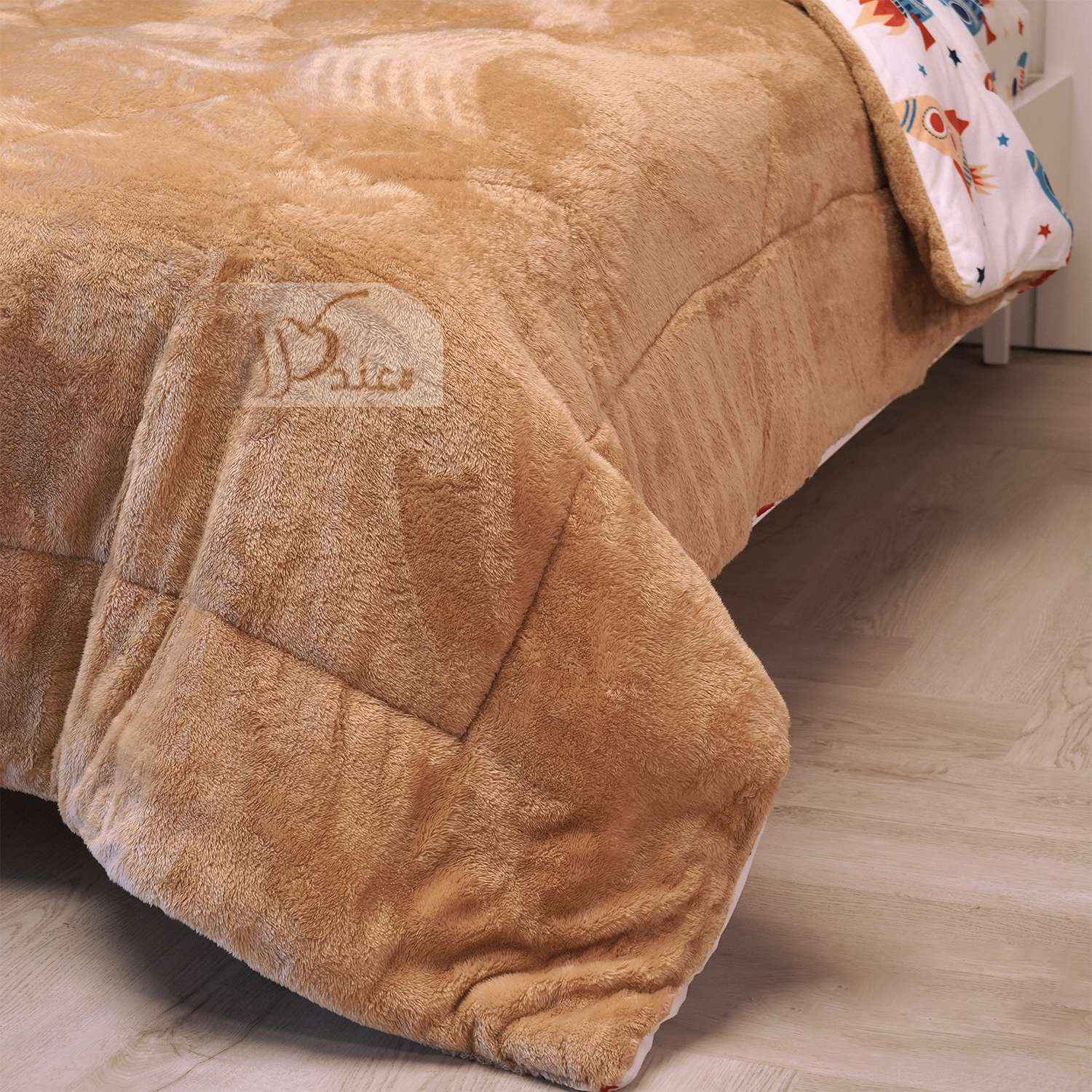 طقم لحاف مفرد شتوي مخمل بوجهين 4 قطع، عسلي