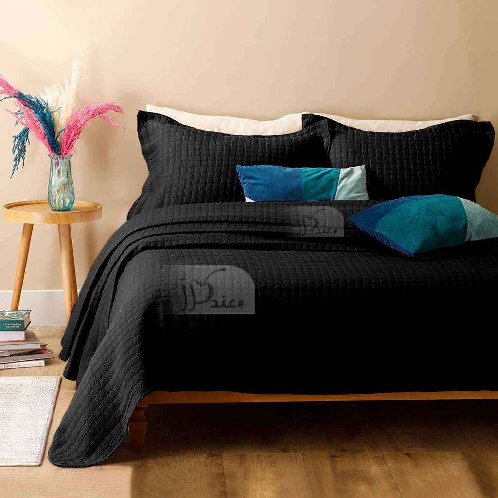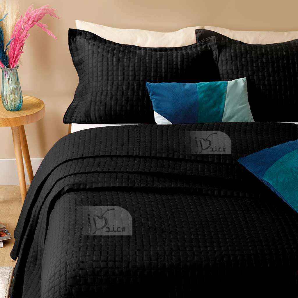 Contemporary Coverlet Bedspread Microfiber Twin Size 2-PCS Set, Black