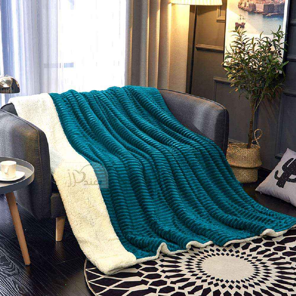 Fleece Reversible Plush Double Blanket 200 x 230 cm, Caribbean Blue