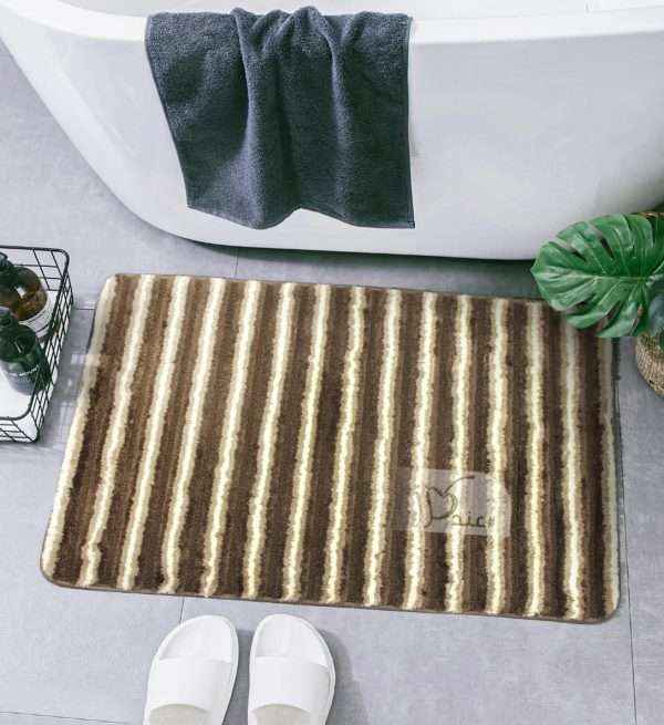 Striped Waterproof Bath Mat Soft Polyester Absorbent Anti-Slip (60X90cm)